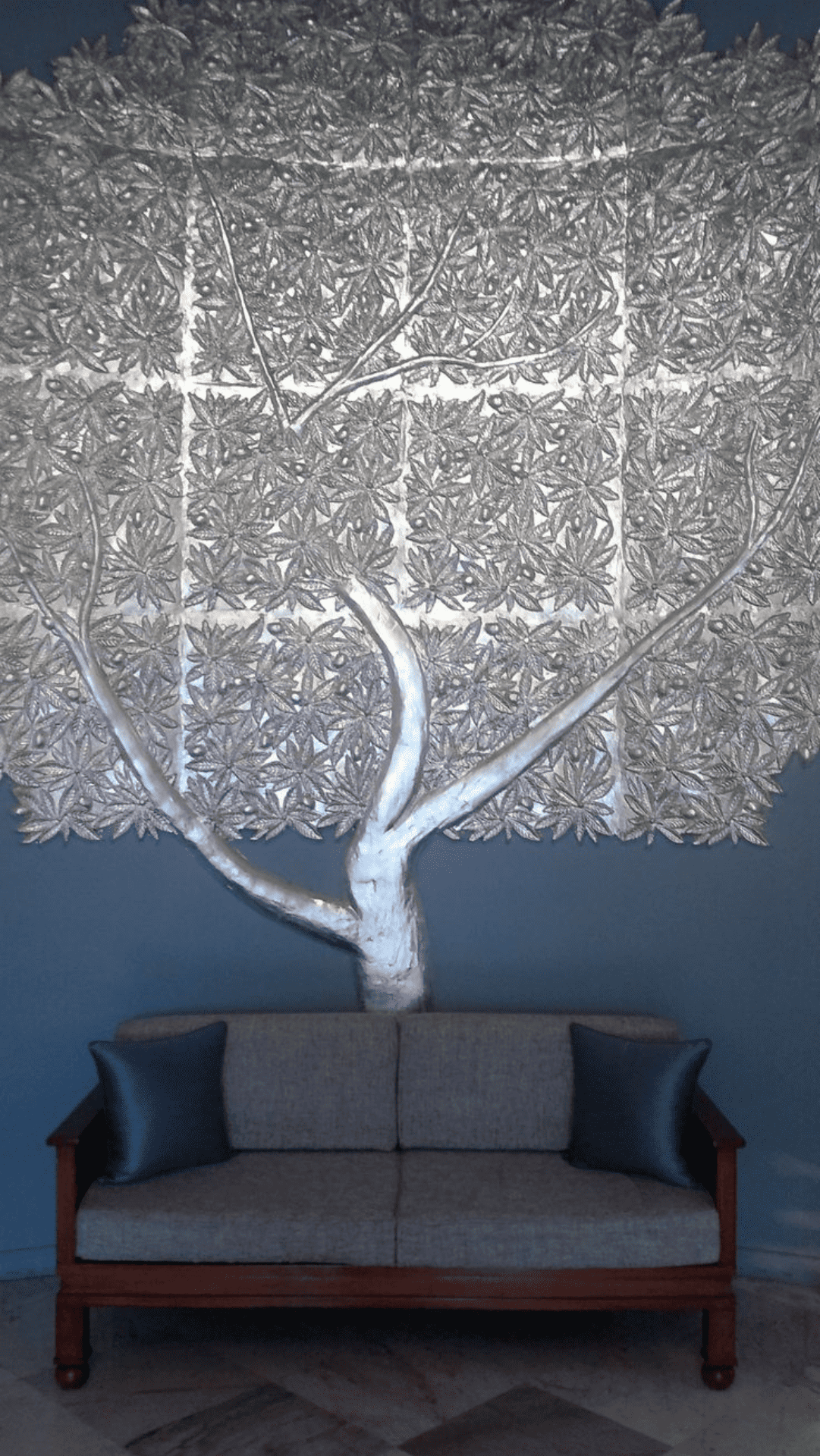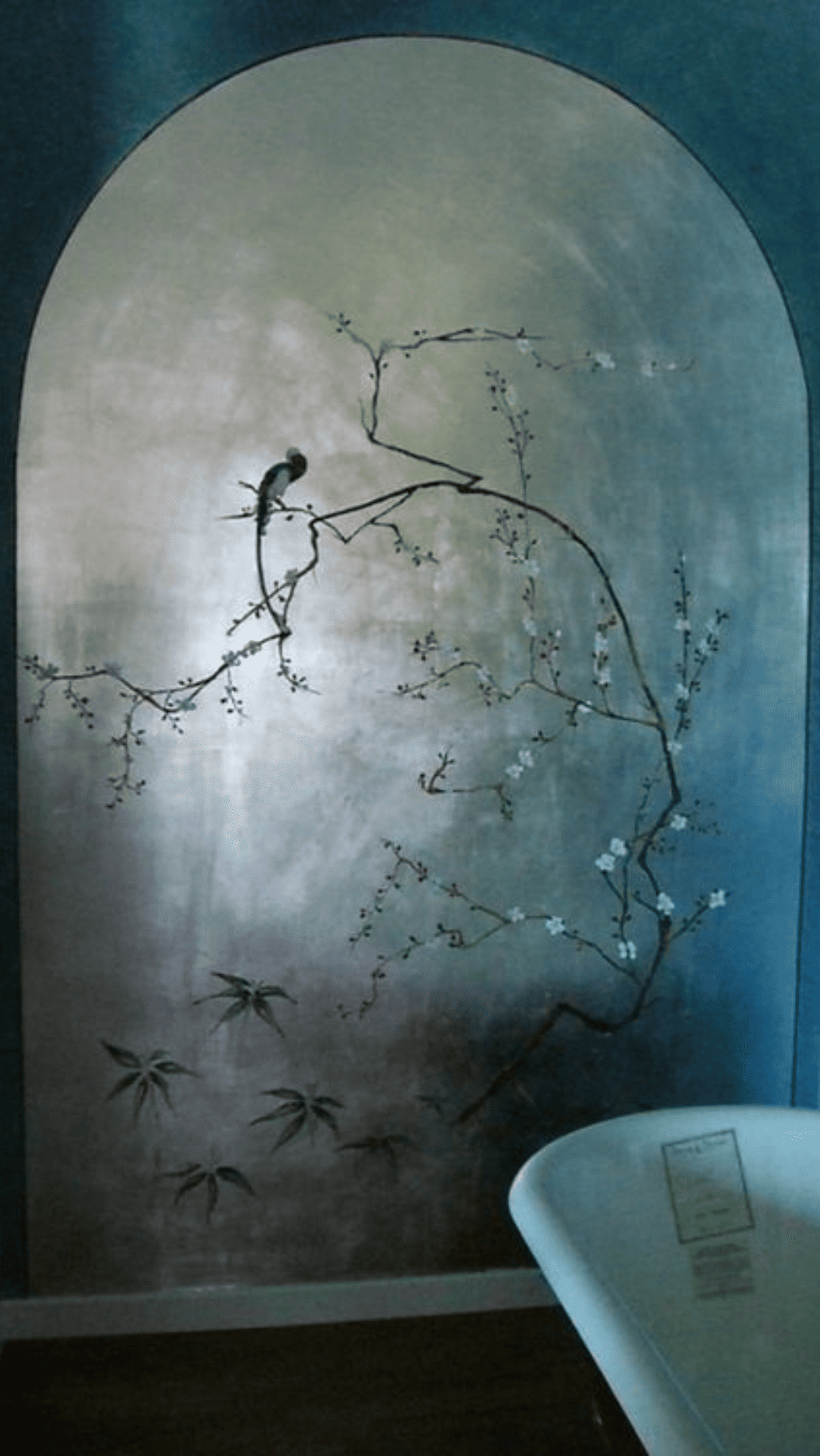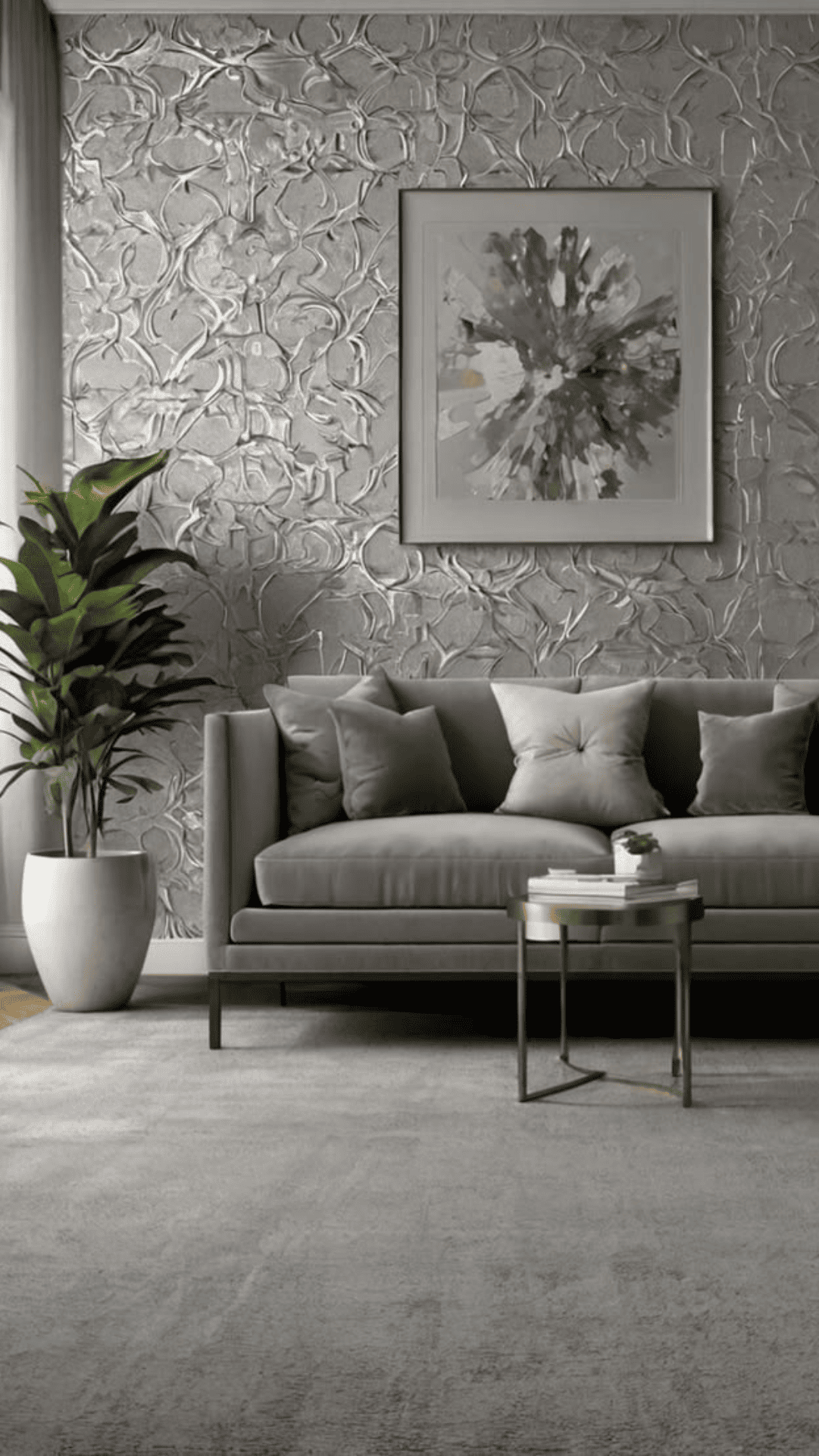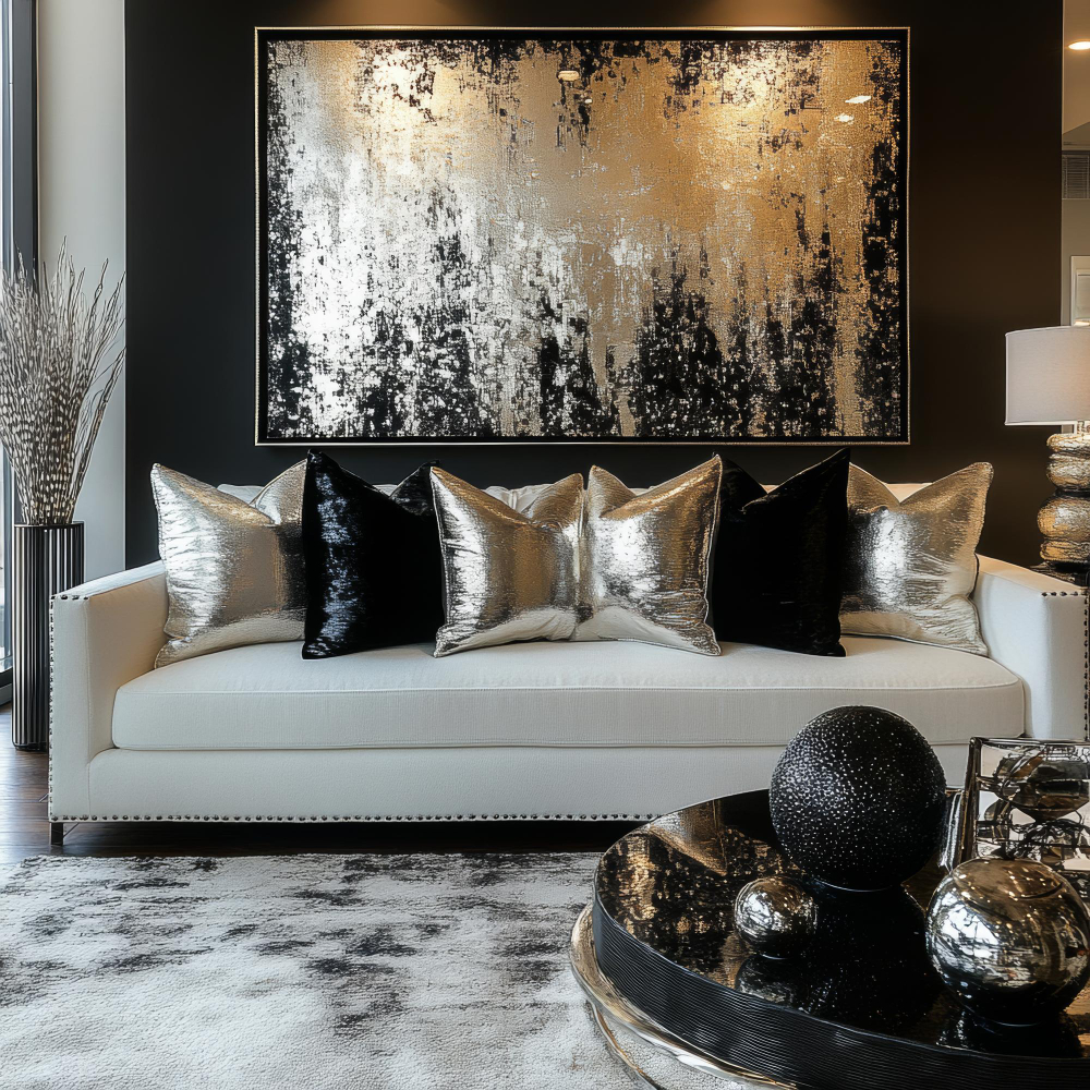 Silver leafing creates a soft metallic surface with a refined, contemporary feel. Its subtle reflectivity enhances light while maintaining a clean and elegant look.